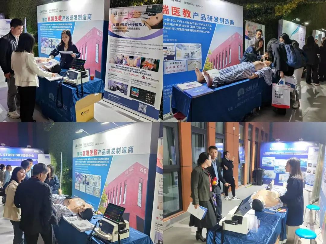 本次展会天堰科技携智能急危重症模拟训练系统参展,智能急危重症模拟训练系统可模拟多种急危重症相关症状体征,可将各种急救及重症抢救技能融合到智能病例系统,进行多场景仿真训练与考核。在展会中智能急危重症模拟病人向参展人员模拟了“急性心肌梗死合并心力衰竭”、“创伤失血性休克”、“急性呼吸窘迫综合征”等急危重症体征,吸引了众多人员停驻展位交流沟通,并进行一系列医学操作。